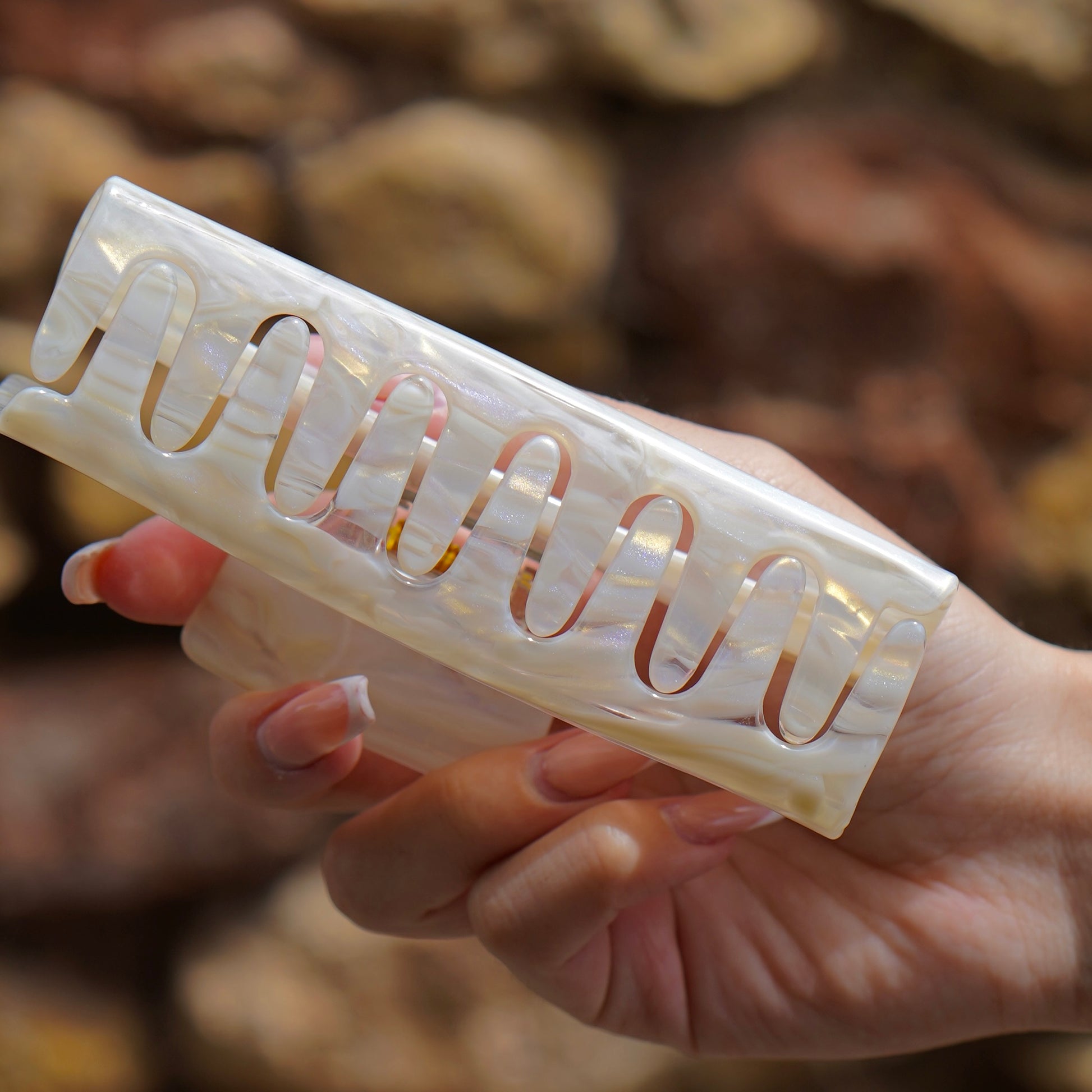 Überdehne nicht die Feder der Haarklammer und vermeide weitestgehend den Kontakt mit übermäßiger Hitze, Wasser oder anderen Flüssigkeiten.